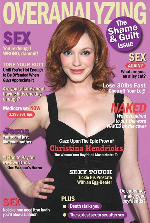 Christina Hendricks and her over-sized mammaries are on the cover of Overanalyzing Magazine.